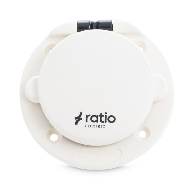 Ratio Glass filled Nylon 6 Polymer shorepower inlet. 2P+E. 240v 16 A - MP16-10-K. IP Rating - IP56 when closed or plug is connected. (Cut out 55mm - OD 88mm).