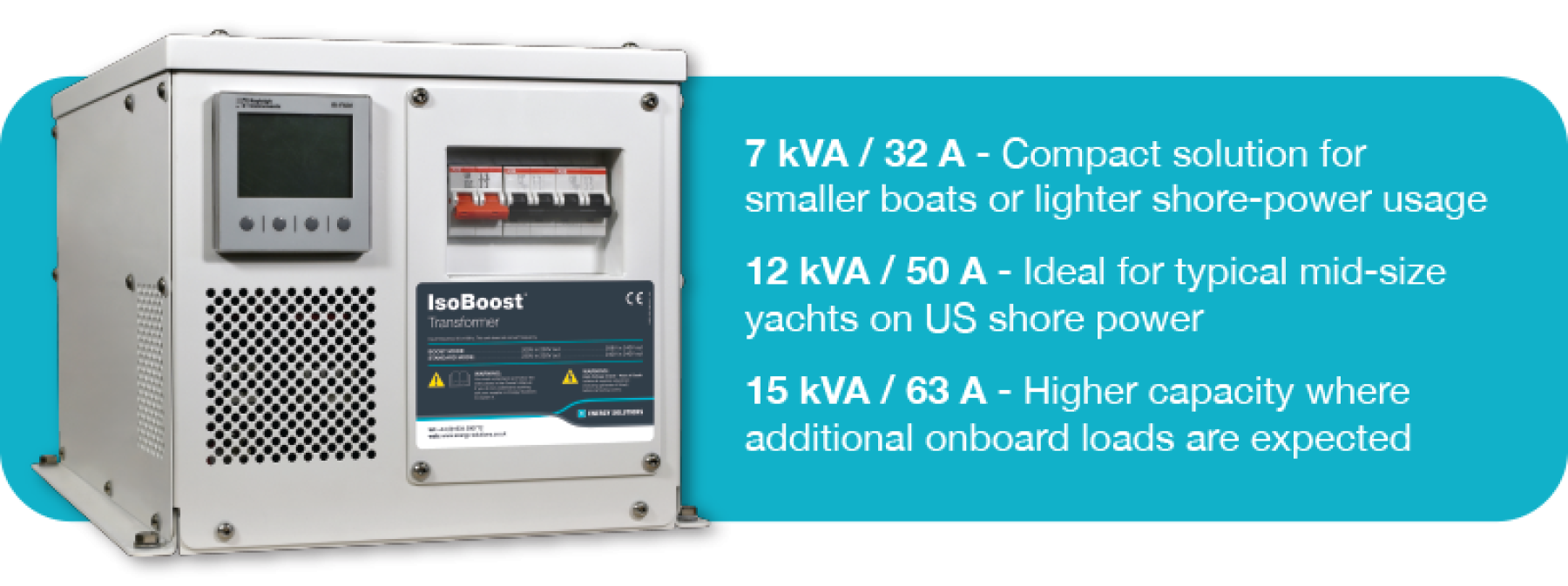 Most of the Energy Solutions range of marine isolation transformers have dual input voltages (120 and 240 volt). This is of particular use on long-distance cruising boats that may want to use 110 volt supplies in Caribbean, USA Etc.