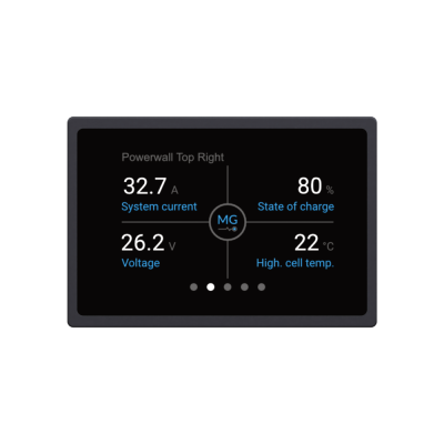 The integrated wifi module enables the display to connect to the cloud. This allows you to remotely monitor your system with the MG Energy Portal. Lastly, the Energy Monitor is the ultimate way for adjusting battery and BMS related settings.