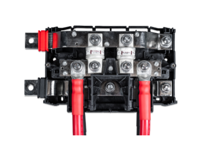 Lynx Class-T Power In (M10) Connects and fuses up to two strings of Lithium batteries. Class T-fuses, available in 225A, 250A, 350A and 400A, must be purchased separately